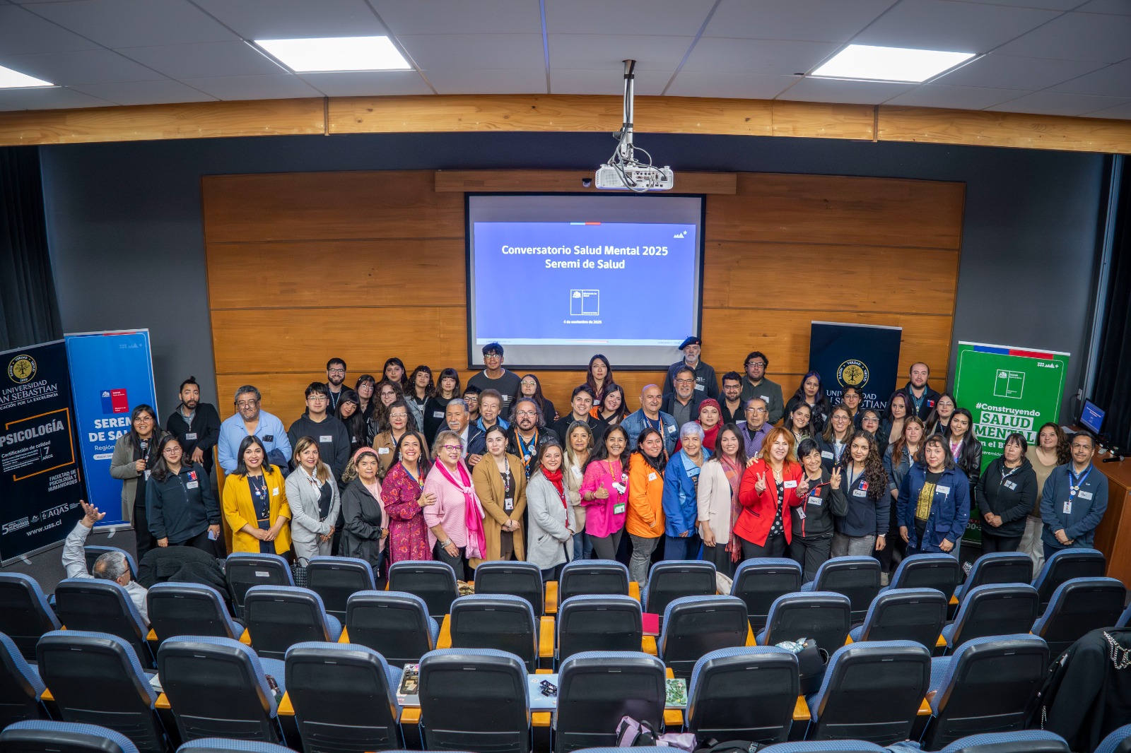 Con el objetivo de fortalecer las políticas públicas en salud mental con enfoque comunitario y participativo, 60 dirigentes sociales, representantes mapuche, agrupaciones de diversidad, personas mayores, cuidadoras y equipos de salud se reunieron en el Conversatorio Regional de Salud Mental 2025, realizado este 04 de noviembre en la Universidad San Sebastián de Concepción.