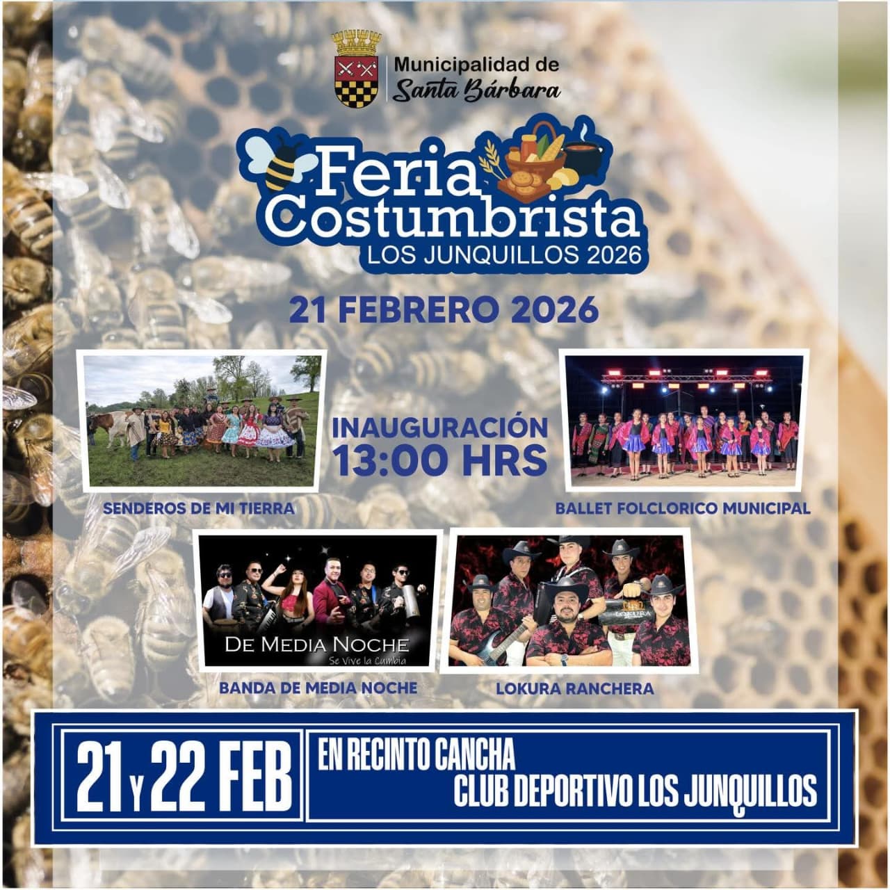 Con el objetivo de promover las tradiciones, la cultura y el turismo local, la Municipalidad, encabezada por el alcalde Cristian Oses Abuter y el Honorable Concejo Municipal, extendió una invitación a toda la comunidad para participar de la Gran Feria Costumbrista Los Junquillos 2026, que se desarrollará los días 21 y 22 de febrero en un entorno natural característico del sector.